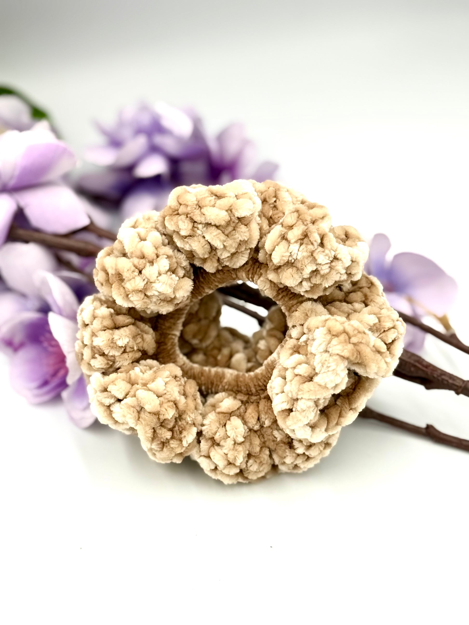 Materials: 100% polyester velvet yarn crocheted around a damage free hair tie