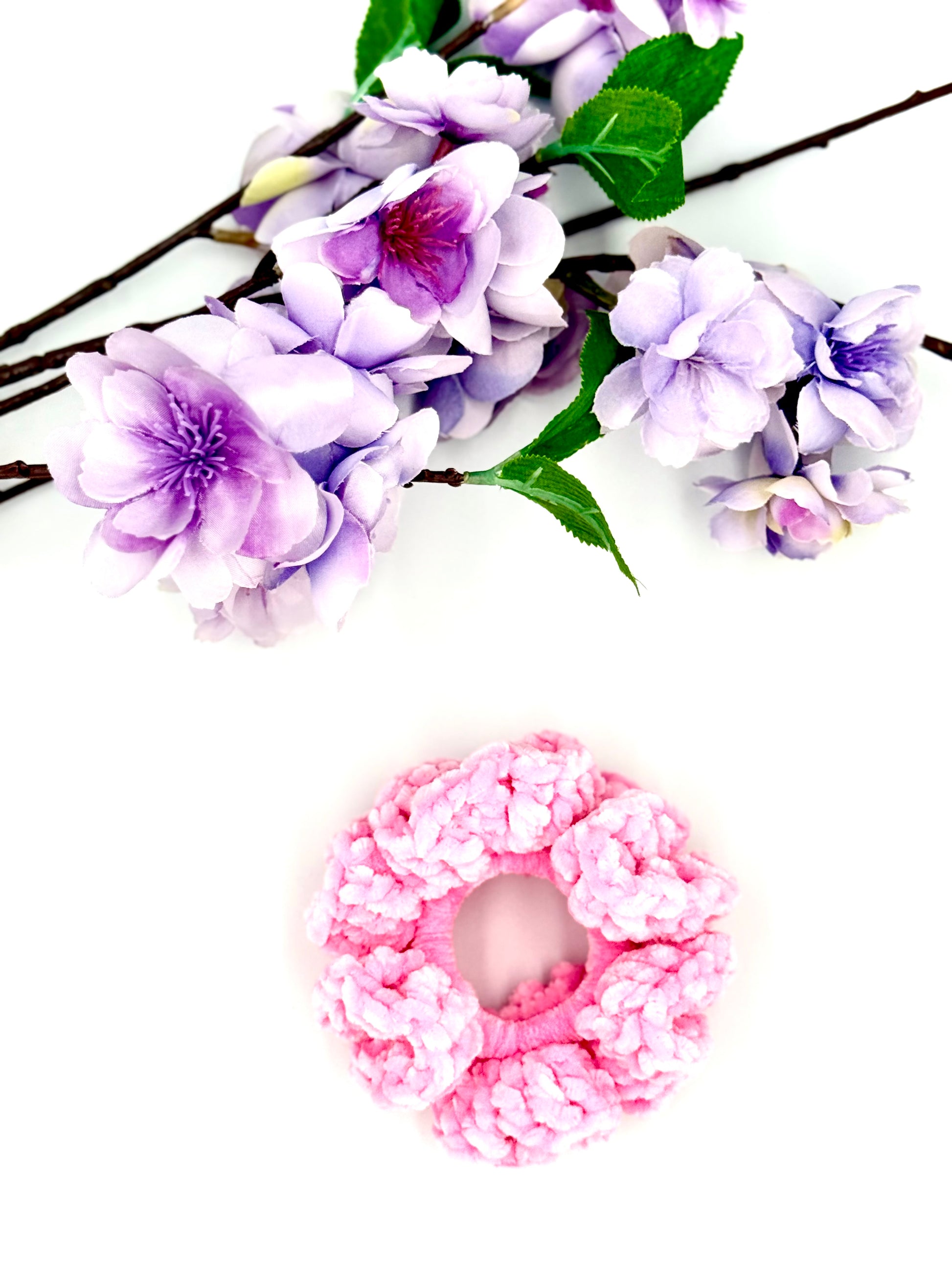 Materials: 100% polyester velvet yarn crocheted around a damage free hair tie
