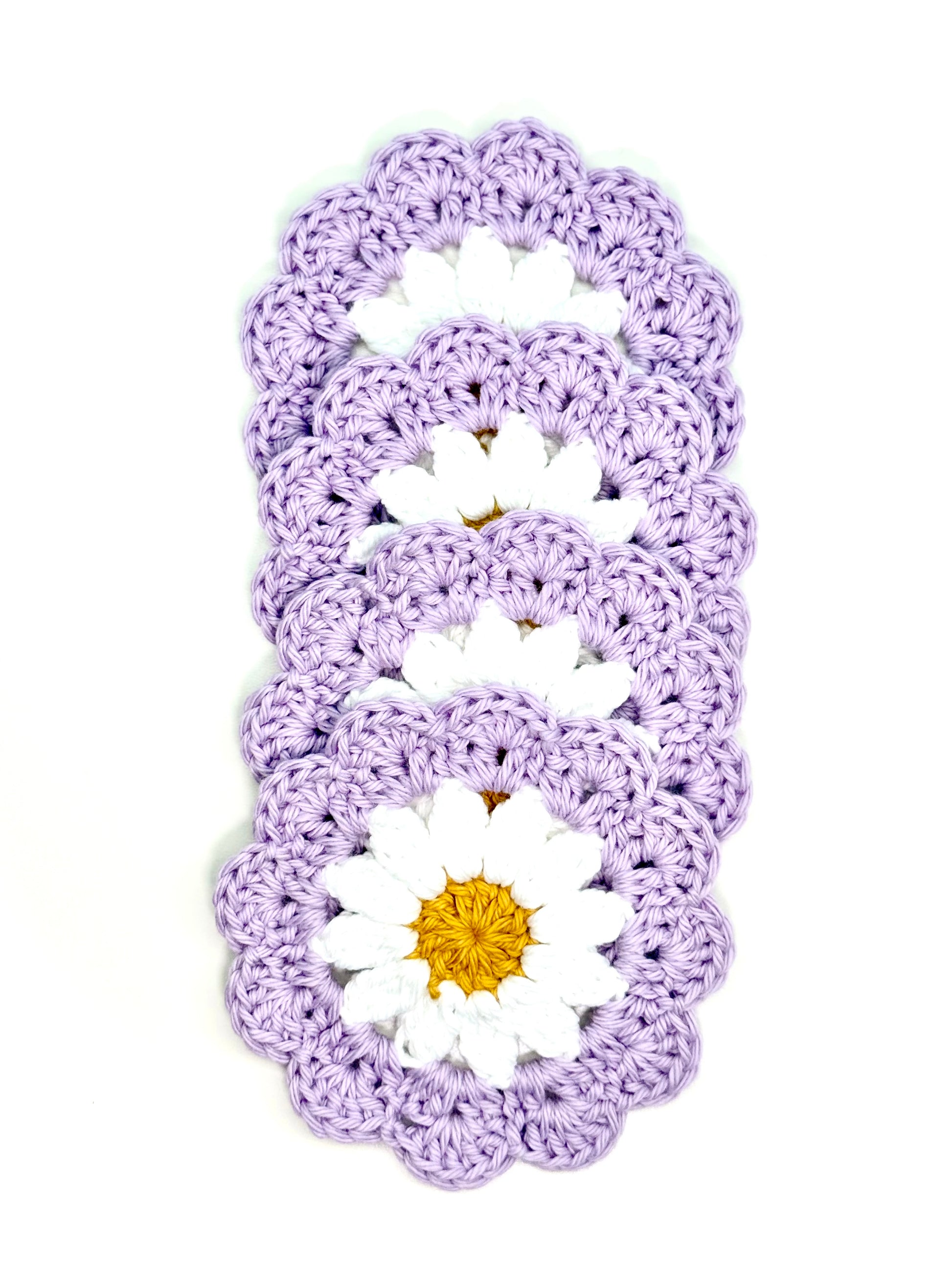 Set of two OR four handmade crochet cotton lavender daisy coasters