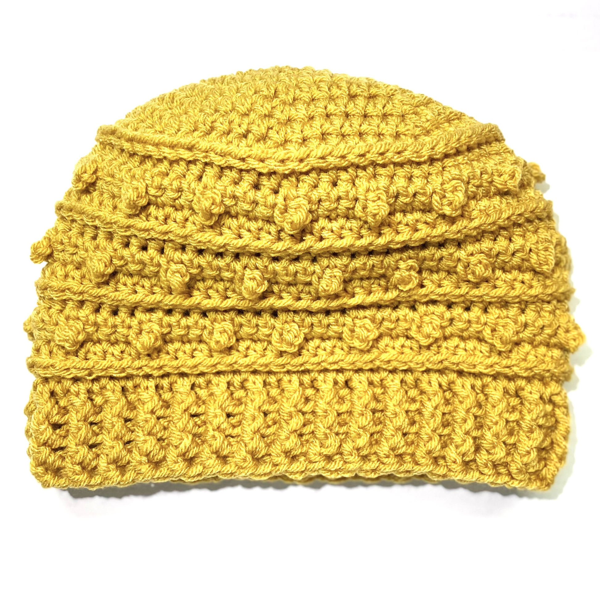 One handmade crochet yellow adult size beanie